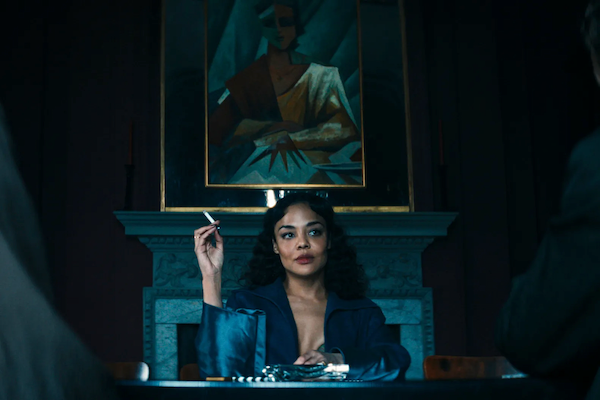 In Ibsen, the alcohol-soaked party during which Lövborg’s manuscript comes into George Tesman’s possession happens offstage, but DaCosta’s masterstroke is to build almost the entirety of the action around an increasingly feverish soiree held at the grand (and unaffordable) home of the newly married Tesman and Hedda. The manuscript, co-written by Eileen and current lover Thea Clifton (Imogen Poots), continues to function as a perfect MacGuffin, representing the direct threat to George’s more permanent employment as a university professor and to Hedda’s iron-willed sense of self. Additionally, the swirling, roiling waves of the evening blowout buoy the comings and goings of key supporting characters, including Judge Roland Brack (Nicholas Pinnock), who leverages his own power in an increasingly coercive clandestine affair with Hedda.